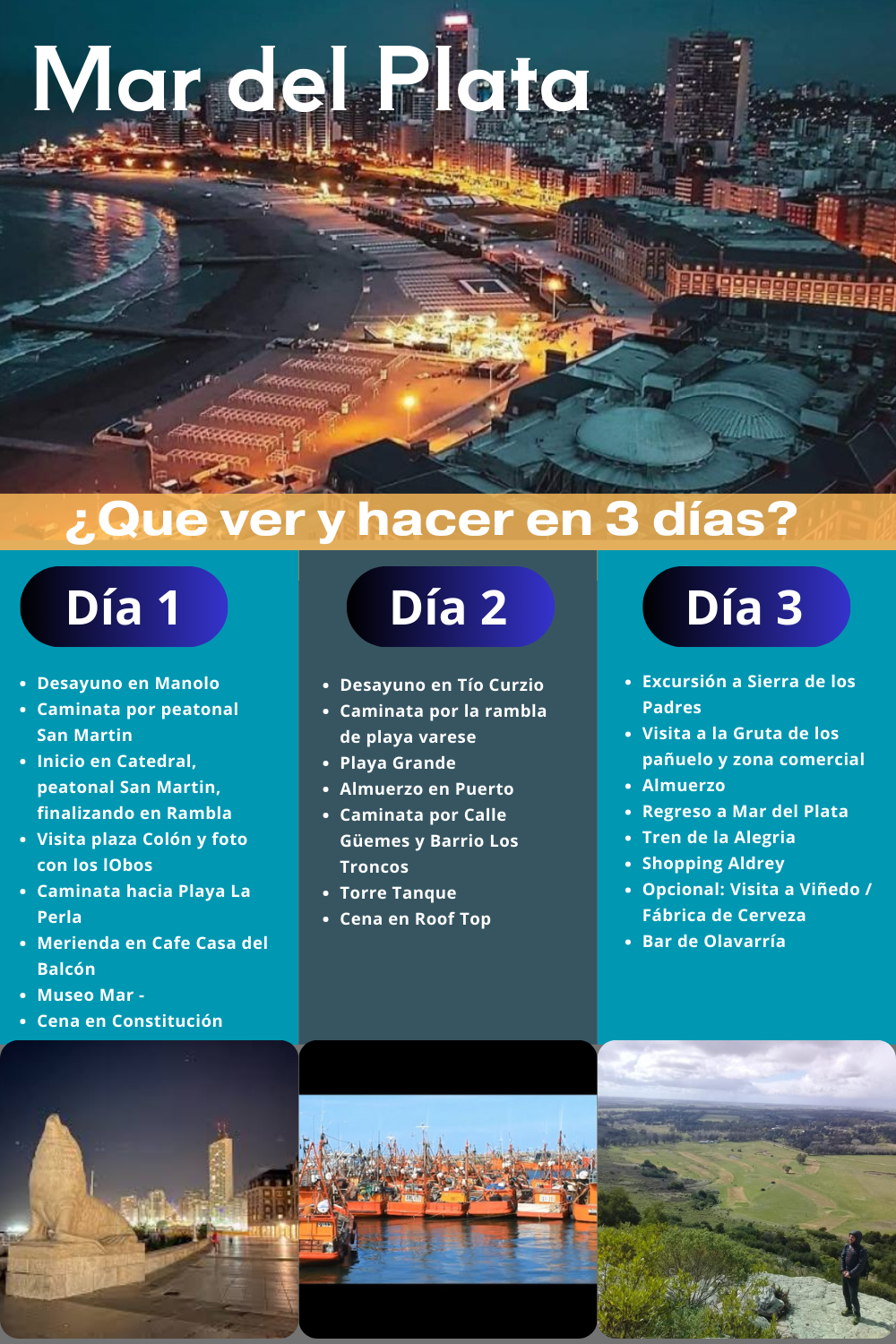 Mar del Plata, la perla del Atlántico argentino, combina playas doradas, vibrante vida nocturna y una rica oferta cultural. Con su icónico Torreón del Monje, la Rambla y el imponente Casino Central, la ciudad encanta a viajeros de todas las edades. Disfruta de una caminata por el puerto, prueba una auténtica medialuna en la tradicional confitería y maravíllate con un espectáculo en el Teatro Colón. ¡No te pierdas la inmensidad de Playa Varese al atardecer y una visita a la reserva natural de Punta Mogotes para conectar con la naturaleza!