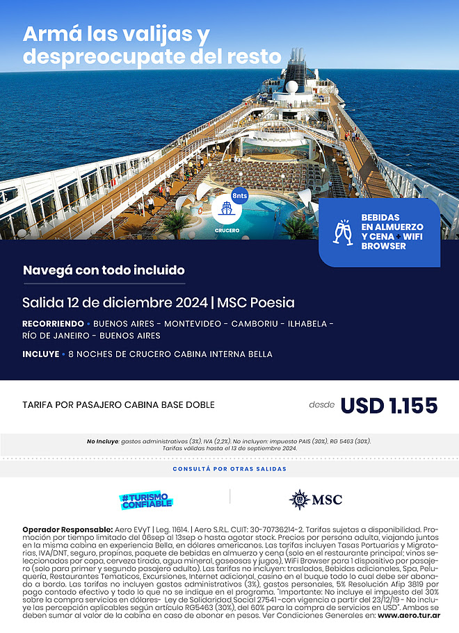 MSC Crucero Gallery https://www.msccruceros.com.ar/ Dic 2024 Bebidas Incluídas WHATSAPPE-MAILVálido hasta: 10/12/2024