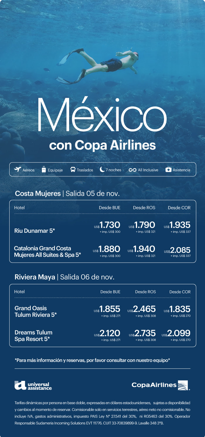 La Riviera Maya es un destino turístico mexicano que enamora con sus playas de arena blanca y aguas turquesas, ideales para relajarse y disfrutar del sol. Pero la belleza de esta región va más allá de sus costas. Sumérgete en la historia Maya explorando antiguas ciudades como Tulum y Chichén Itzá. Refrescate en los cristalinos cenotes, formaciones naturales que te transportarán a otro mundo. La Riviera Maya también te ofrece una amplia gama de actividades, desde buceo en arrecifes de coral hasta aventuras en la selva maya. Y por supuesto, no puedes perderte la deliciosa gastronomía mexicana y la vibrante vida nocturna de Playa del Carmen, Cancún, Isla Mujeres.